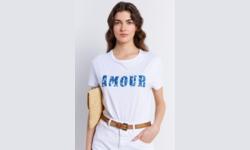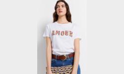 - Coupe droite - Uni - Col rond - Manches courtes - Fentes d'aisance côtés - Col rond à bord-côte - Inscription "Amour" en tie and dye - Visuel cœur contrasté - Surpiqûres ton sur ton