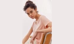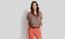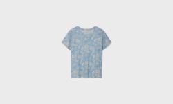 Tee-shirt fluide bi-matière en voile fleuri et jersey flammé.